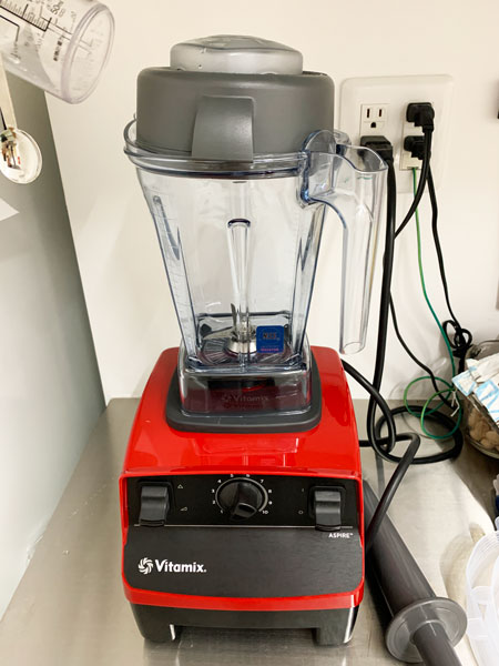 1. 材料を入れて混ぜるが、水分がないとミキサーが回らないので、少量の豆乳を入れて混ぜる。とても楽チン。もちろんボールで混ぜてもOK