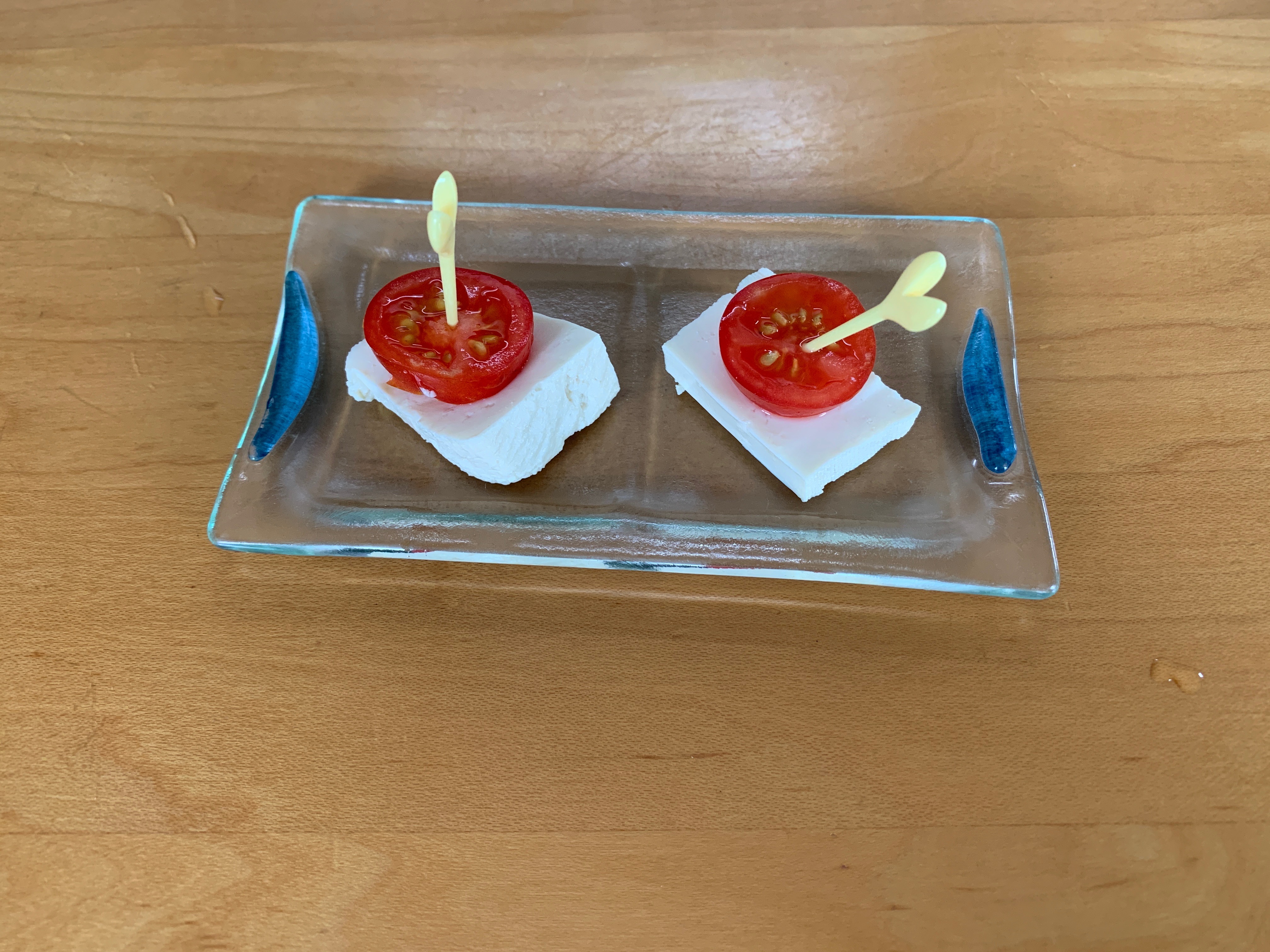 モッツアレラチーズのように、切り分けて、トマトのスライスと一緒に。