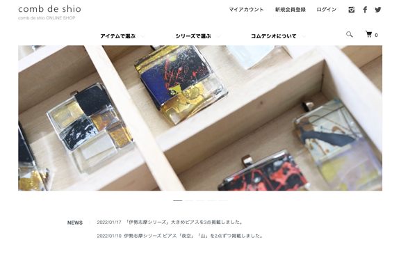 数々の賞を受賞後、1999年にグラススタジオ「comb de shio」を設立。独自の手法で彩色・焼成を繰り返し作り上げるモダンで新しい感覚のガラス作品は、壁面を飾るアート作品から、アクセサリーへと広がり、現在は様々なデパートやギャラリーを通して、感性豊かな女性達に支持されている。