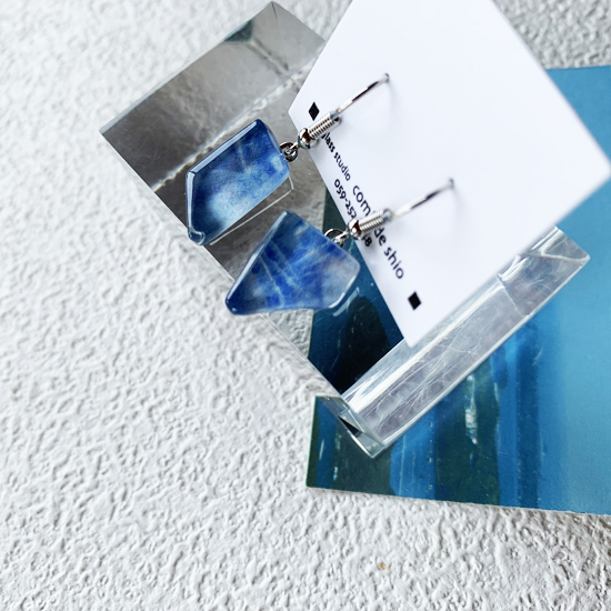 同僚が着けていたチョーカーのガラスが大変素敵でしたので、購入先を聞き、あれこれ迷って今回は、海の色のピアスを購入させていただきました。