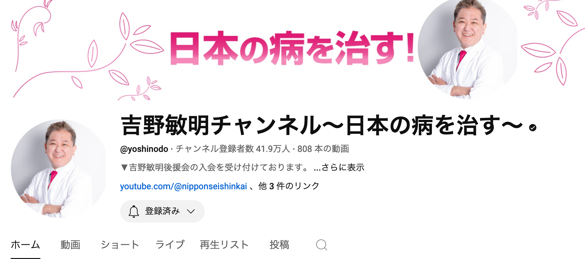 よしりんこと『吉野敏明チャンネル〜日本の病を治す〜』のYouTubeチャンネルでもうすでにご存知の方もたくさんおられるのではないかと思います。