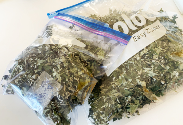 洗うのが少し手間なんだけど、だけど、農薬も犬のおしっこもかかってないコムデシオのヨモギ専用畑(笑)のヨモギなので、洗うのも楽チンで安全です。