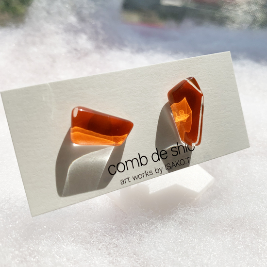 先日から「オレンジ色に魅せられて、、、」の私は、このお天気にぴったりと思って、少し大きめ(Mサイズ)のオレンジ色ピアスの撮影に一生懸命でした。