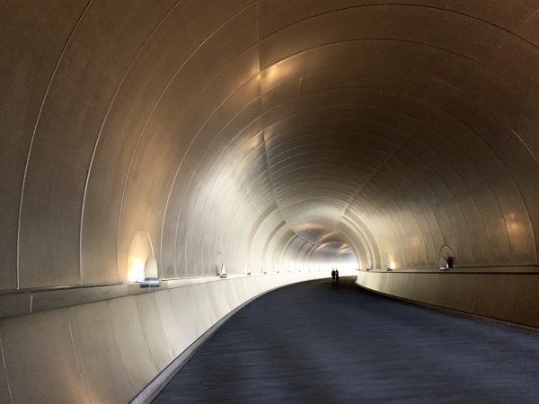 このトンネルを抜けるとミュージアムがある。この写真は、ミュージアム側から撮影したものだけど、電気自動車がこのトンネルを抜けて、ミュージアムへ運んでくれる。