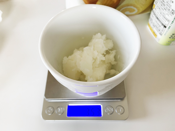 無臭のもの。冬は、固まっていますが液体に戻す。私は、レンチン。重さはほぼ同じです。