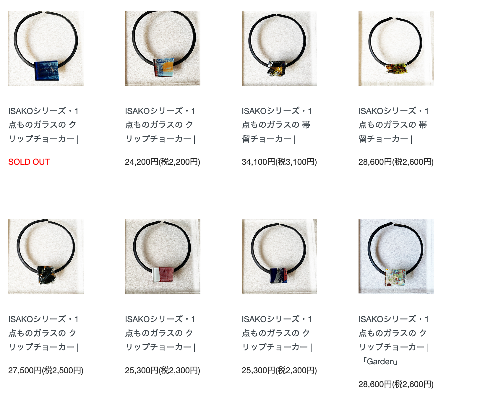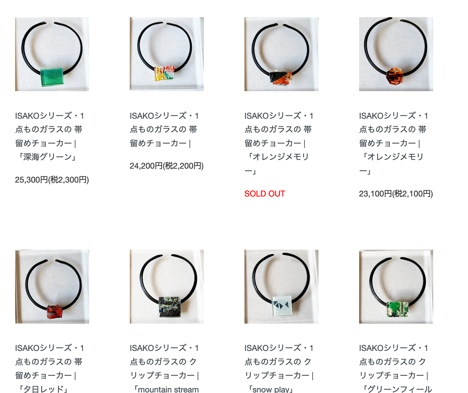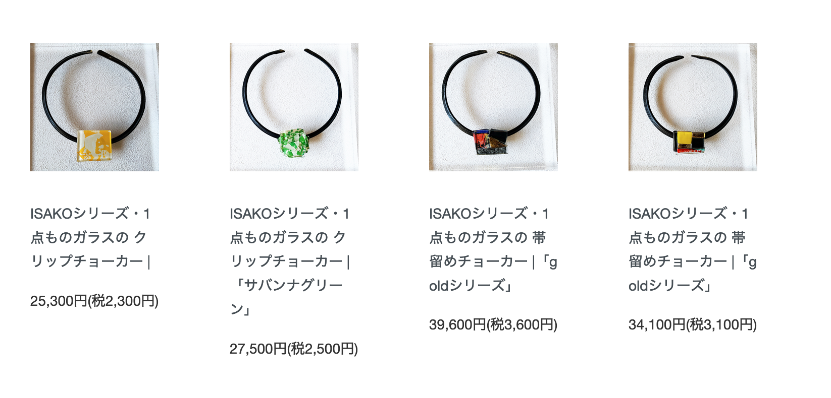本人曰く「面倒臭がり屋のおしゃれさん」。ガラスの美しさに留まらず、簡単に、楽に着けられるアクセサリーへの配慮やアイデアも、Isakoの作り出すアクセサリーの人気の理由のひとつ。