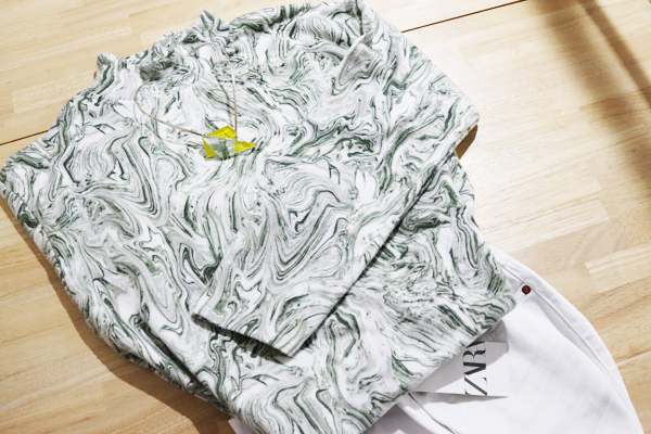 春用の薄ーいグリーンのカットソーとオフホワイトのパンツをZARAで買ったので、そのカットソーとアクセを撮影してみました。