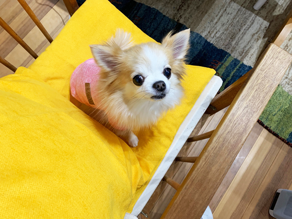 私専用の椅子のクッションを黄色にしてみたら、、、