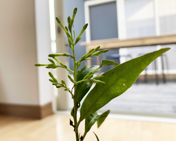 待ちに待った「夜香木」さん、小さな花の蕾までつけて来てくれました。